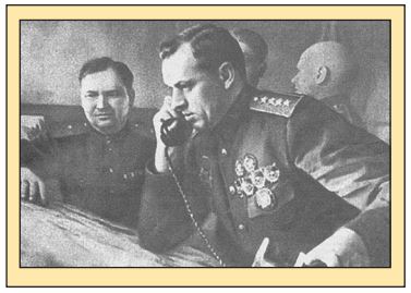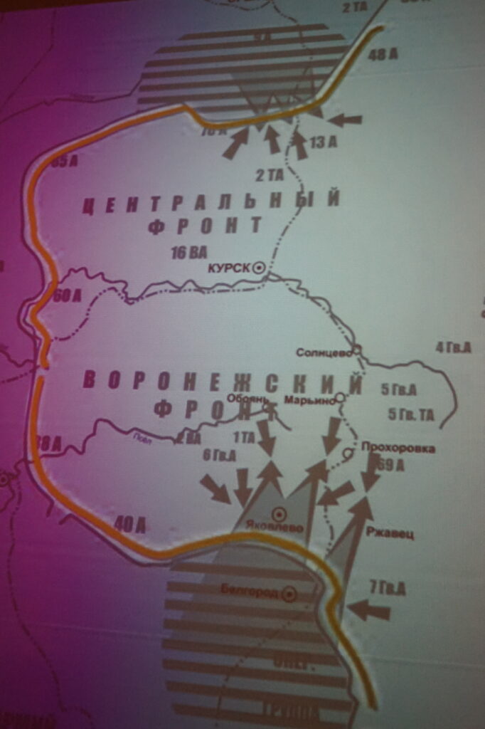 Kurskin taistelussa ratkaiseva merkitys oli kokeneilla rintaman- ja armeijan komentajilla. Sovjetskaja Rossija-lehden liitteen artikkelin kuva (katso lähdeaineisto) ”LänsiR:n komentaja K.K.Rokossovski Kurskin kaarella”.