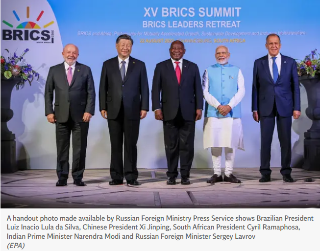 BRICS:in 15. huippukokouksessa keskusteltiin dedollarisaatiosta ja tavoista lisätä paikallisten valuuttojen käyttöä kaupankäynnissä, vaikka asiantuntijat epäilevätkin, ettei ajatus yhteisestä valuutasta voisi toteutua. Joka tapauksessa Kiinan renminbin käyttö on jo lisääntynyt. Yhä useammat Afrikan maat, mukaan lukien Mauritius, Nigeria ja Sambia, käyttävät jo renminbia varantovaluuttana.