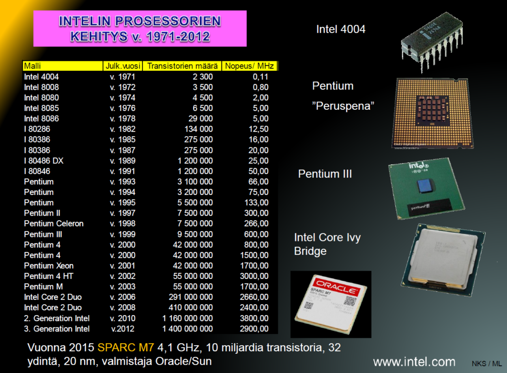 Vuosi 1971 osoittautui merkkipaaluksi uuden teknologian vallankumouksessa. Tuolloin Yhdysvalloissa otettiin käyttöön maailman ensimmäinen mikroprosessori – Intel 4004. Mikroprosessori on elektroninen osa tietokoneessa, joka hoitaa varsinaisen tietojen käsittelyn ohjelmien antamien ohjeiden mukaisesti. Tietokoneet matkivat ihmisen keskushermostoa matematiikan avulla. Niiltä puuttuu kuitenkin yhä sosiaalinen tilannetaju, myötätunto, arjen rutiinien hallinta, vapaa tahto ja kyky ajatella itsenäisesti.