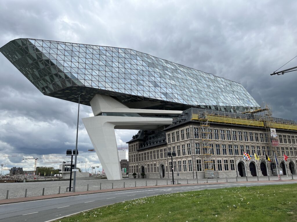 Belgiassa on kiinnostavaa uuttakin arkkitehtuuria. Antwerpenin satamasta löytyy irakilaisen naisarkkitehti Zaha Hadidin vuonna 2016 suunnittelema Havenhuis, joka sijaitsee satamassa palolaitoksen yläpuolelle maamerkkinä mereltä tuleville. Zaha Hadidin arkkitehtuuri on aivan omaa luokkaansa maailman mittakaavassa.