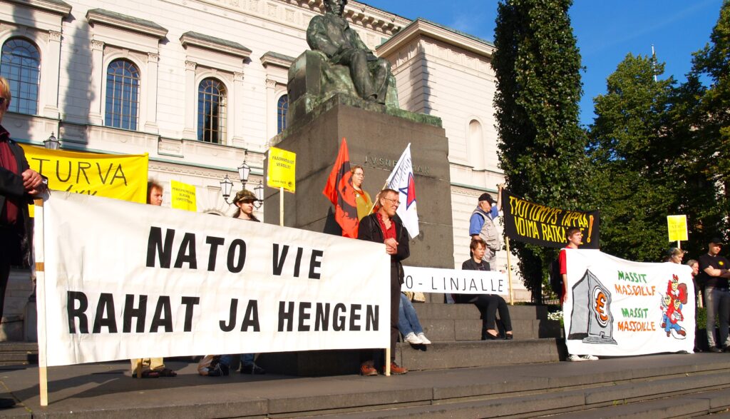 Budjettiriihen yhteydessä (26.8.09) järjestettiin Helsingin Työttömät ry:n koordinoimana mielenosoitus. Silloinkin HTY vaati elvyttämistä mm. sijoituksilla julkiselle sektorille. Tänäänkin työttömyys vaikuttaa suoraan lähes miljoonan palkansaajan elämään. Jo v. 2001, kun päättäjät valitsivat euron markan tilalle, muistutimme, että Euron oloissa vaikeat kustannuskriisit hoidetaan irtisanomisilla, työttömyydellä ja julkisten palvelujen leikkauksilla. Tämä on käymyös tänään todeksi. Kustannukset hoidetaan leikkaamalla mm. terveydenhoidosta. Työttömien ohella “tapetaan” hyvinvointipalvelut. Ja mikä tärkeintä! Jo silloin v. 2009 osattiin selkeästi varoittaa Naton ja militarisoinnin. Vain voima ratkaisee