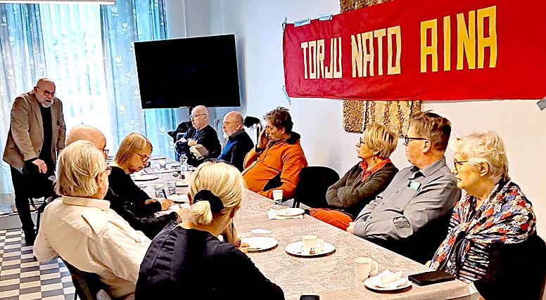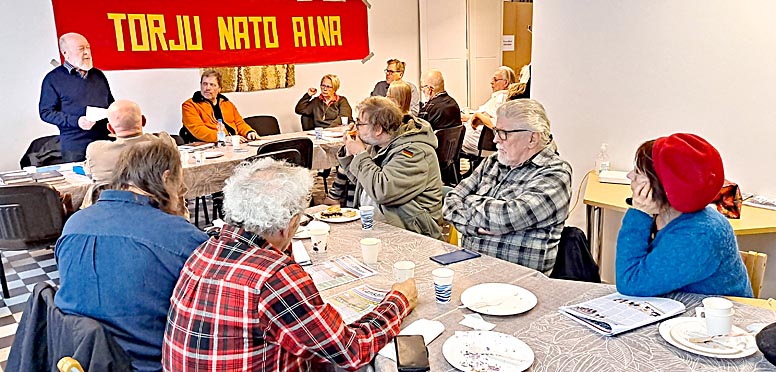 Olen otettu saatuani kutsun vasemmalta laidalta puhumaan tilaisuuteenne. Olen työskennellyt vuosi kymmeniä sosiaali- ja terveyspolitiikan parissa. Toimin Vantaan valtuustossa SDP:n ryhmässä. Mielestäni nykytilanne on huonompi kuin 1920–30-luvuilla Suomessa. Vastustajia on niin vähän, ettei ketään tarvitse vangita. Militarismi jakaa kaikki eduskuntapuolueet kahtia – sodan puolesta ja sotaa vastaan. Diplomatiaan ei suoda saumaa. Rauha on ehdoton edellytys hyvinvointivaltion olemassaololle. Suomi kustantaa Nato-tukikohdat ja Yhdysvallat niiden läheisyydessä toimivat bordellit.