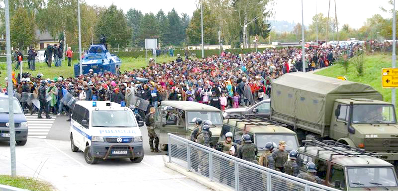 Tässä Kuvassa Saksaan pyrkiviä siirtolaisia Sloveniassa, joita ohjailee Slovenian armeija. Nämäkin pakolaiset lienevät tulleet Afrikasta Välimeren kautta. On huomattava, että viime vuonna Välimeren kautta Italiaan on saapunut lähes 12000 lasta, jotka ovat pakomatkallaan suuressa vaarassa. Viime vuonna lähes 2500 ihmistä menehtyi tai katosi merimatkalla ja heistä yli 100 oli lapsia. (Kuva Tietolähde mm. Maailma.net/Teija Laakso, Kuva: Wikimedia Commons CC BY 2.0)