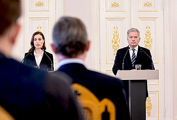 Sanna Marin ja Sauli Niinistö ovat tiedotustilaisuudessa 24.2.2022 synkän näköisiä. Venäjä lähetti kaikille Etyj-maille esityksen neuvotteluista, jossa käsiteltäisiin Naton Etyj-sopimuksen vastaista laajentumista. Sanna ja Sale torjuivat kumpikin tahoillaan esityksen todeten, että etupiirit eivät kuulu 2000-luvulle. He selkeästi valehtelivat. Etyj- päätöksissä todetaan, että kaikilla on oikeus liittoutua ja järjestää turvallisuutensa haluamallaan tavalla, mutta kuitenkin edellytyksellä, että ei samalla heikennä toisen Etyj-valtion turvallisuutta, kuten mm. tapahtuisi, jos Ukraina ja Georgia otettaisiin Naton jäseniksi