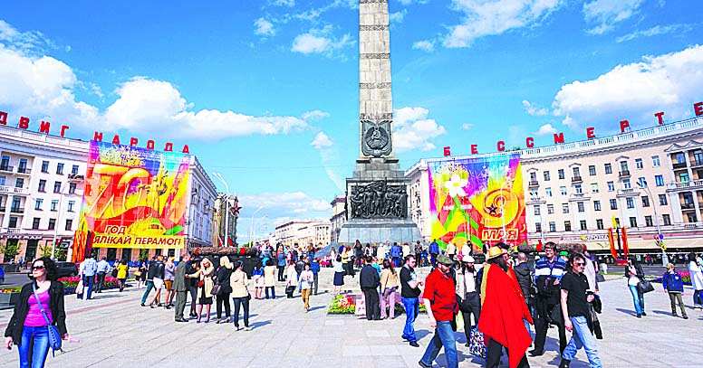 Päivän aikana ihmiset olivat pitkään liikkeellä ja baarit sekä ravintolat olivat täynnä. Illalla palatessamme hotellille seurasimme lähellä sijaitsevalla Voiton aukiolla Valko-Venäjä näyttää vaihtoehdon …. mieleen painuvaa veteraanien ja paikallisten ihmisten sekä turistien toimintaa.